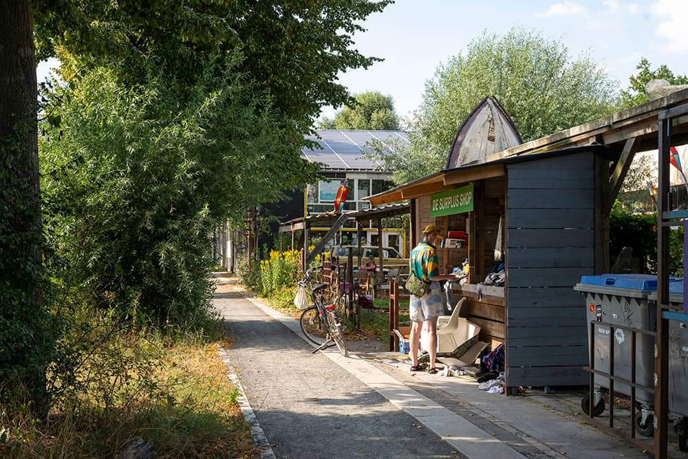 Vanaf het eerste moment voegden de zussen Ernst een pijler toe aan het creatieve profiel: circulair ondernemen, al is het maar omdat het volgens Charlotte ‘misselijkmakend is hoeveel bouwafval we produceren’. Een slimme zet, omdat circulair denken en handelen – dat naast hergebruik ook gaat ook over duurzame energie, klimaatadaptatie en inclusiviteit – past bij het DNA van de creatieve gemeenschap. "Dat zit ’m in de functies, zoals repaircafés, werkplaatsen, ateliers, een winkel voor tweedehands bouwmaterialen, maar ook in hoe kunstenaars en makers omgaan met gebouwen en objecten. Neem de Nijverheid, neem de Vlampijpateliers, en kijk hier," ze wijst naar eigen Hof, "90 procent van wat je ziet is hergebruikt of restmateriaal. De tuin is een wadi dat regenwater opvangt."