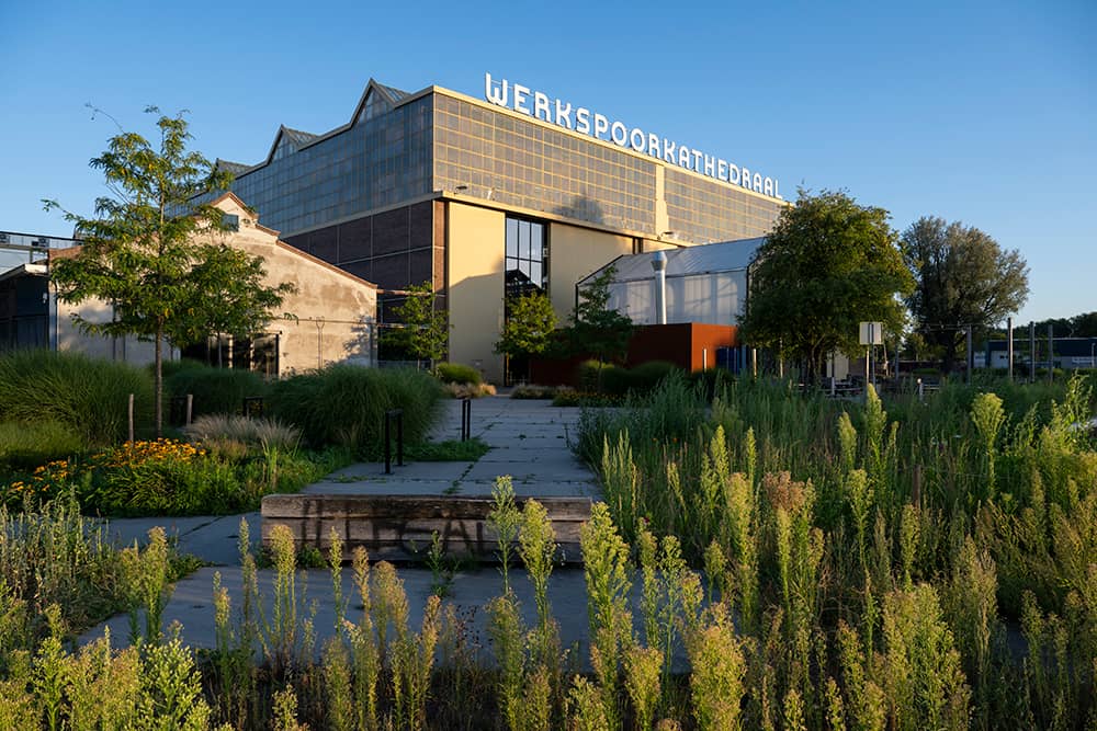De heringerichte buitenruimte van de Werkspoorfabriek.