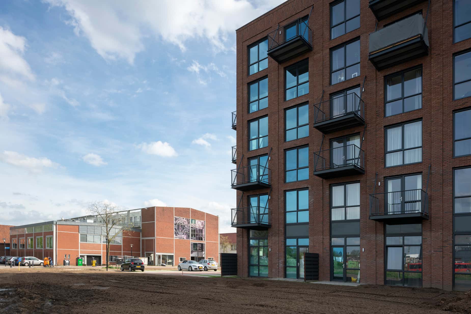 Het oude fabrieksgebouw de Buigerij werd getransformeerd tot appartementencomplex (architect Dick van Gameren), rechts nieuwbouw (4D architecten).