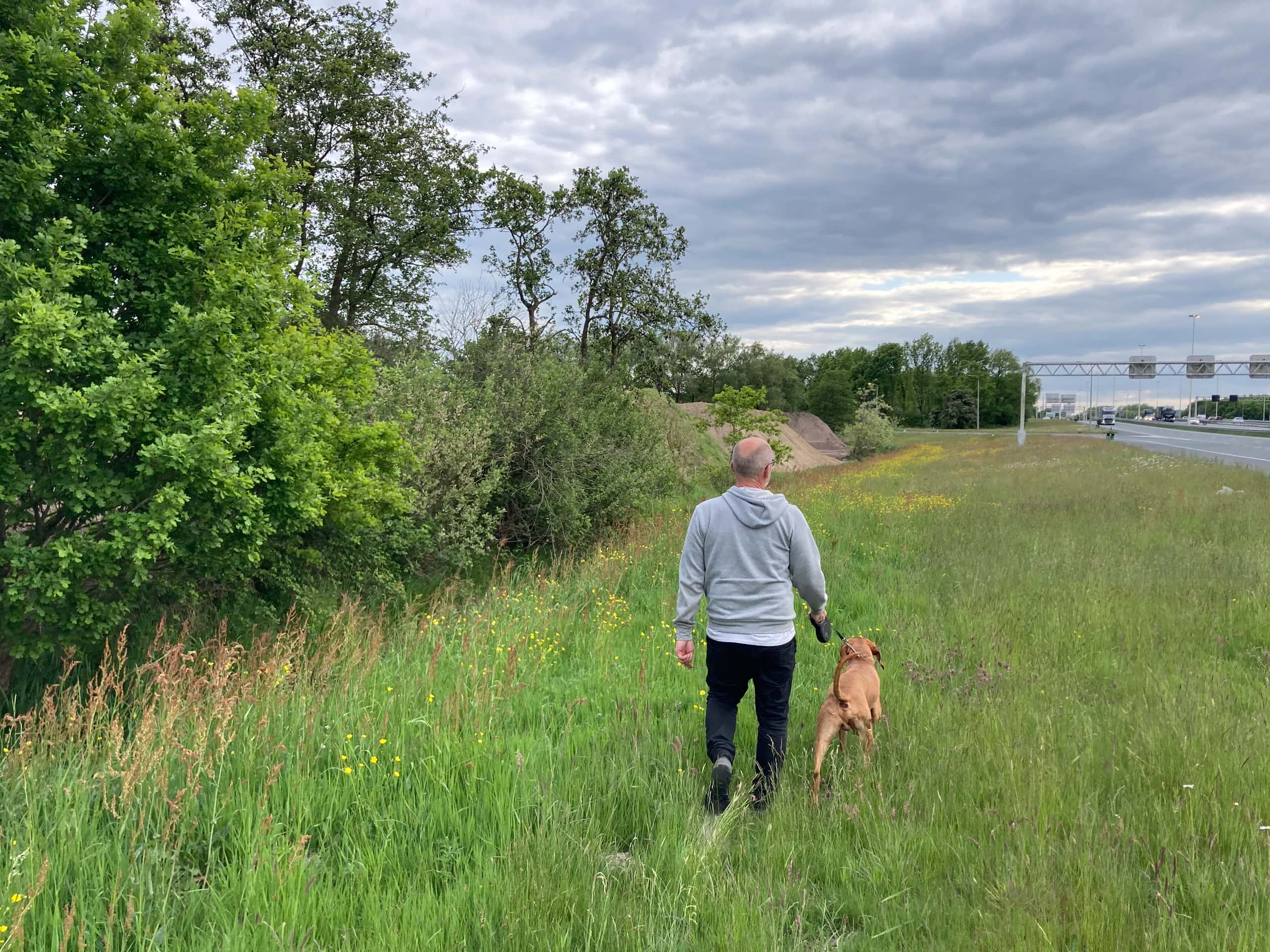 Een wandeling rond knooppunt Hoevelaken is een thuiswedstrijd voor Richters. Hij woont in het dorp – “Nee, zelf stoor ik me er niet aan de coffeeshop”– en loopt hier vaak met zijn hond, een energieke Hongaarse vizsla. Maar vooral is hij als projectleider al sinds 2007 betrokken bij de knoop.