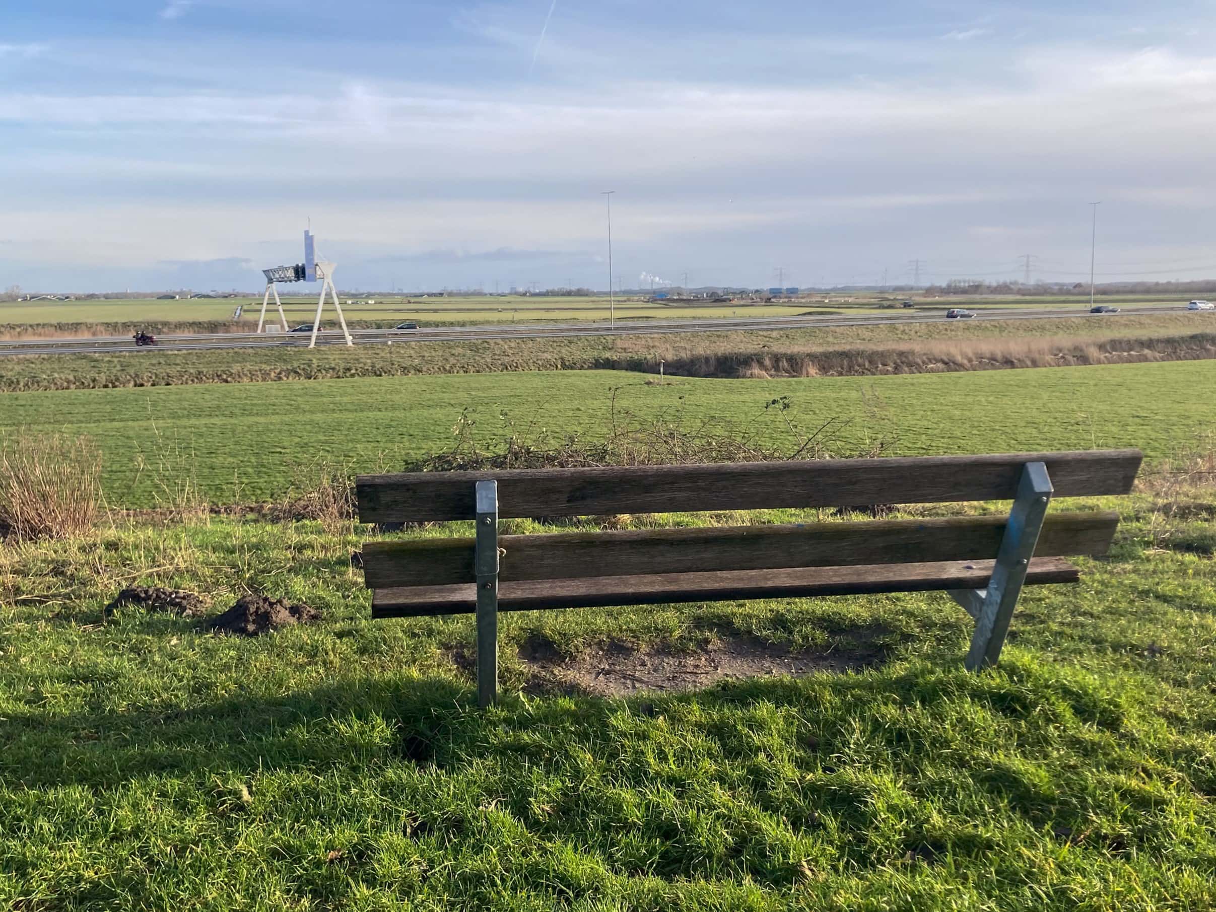 Knooppunt Beverwijk, bankje in het Aagtenpark met uitzicht op A9