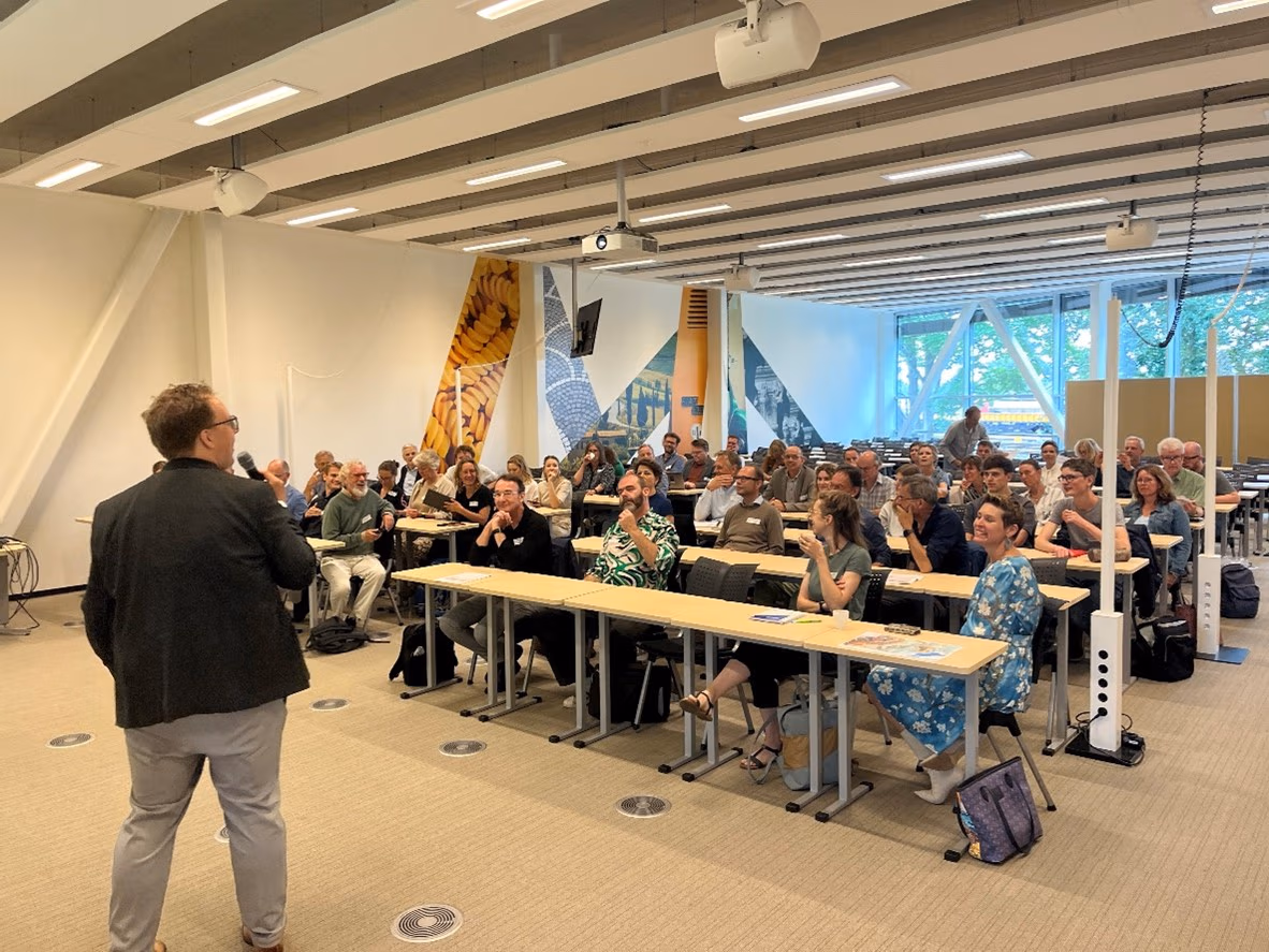 “Wie woont er in Oost-Nederland?” begint dagvoorzitter Max van Tongeren van Saxion Hogescholen, waar we te gast zijn. Bijna alle handen gaan de lucht in. “En wie van jullie is hier naartoe getrokken vanuit de Randstad?” Een handjevol vingers. Saxion doet onderzoek naar deze trek ‘oostwaarts’. Steeds meer mensen komen in Oost-Nederland wonen en dat aantal zal in de toekomst verder toenemen, volgens de verstedelijkingsstrategieën voor alle grote stedelijke gebieden in de regio. Dit terwijl we water en bodem sturend zijn, een energietransitie doormaken, werkgelegenheid mee moet groeien, het liefst in een circulaire economie. En dat in een landschap dat onder druk staat door al die ruimteclaims. Daarnaast zucht datzelfde landschap ook onder stikstof en vraagt het om vernieuwende vormen van landbouw en landschapsbeheer.